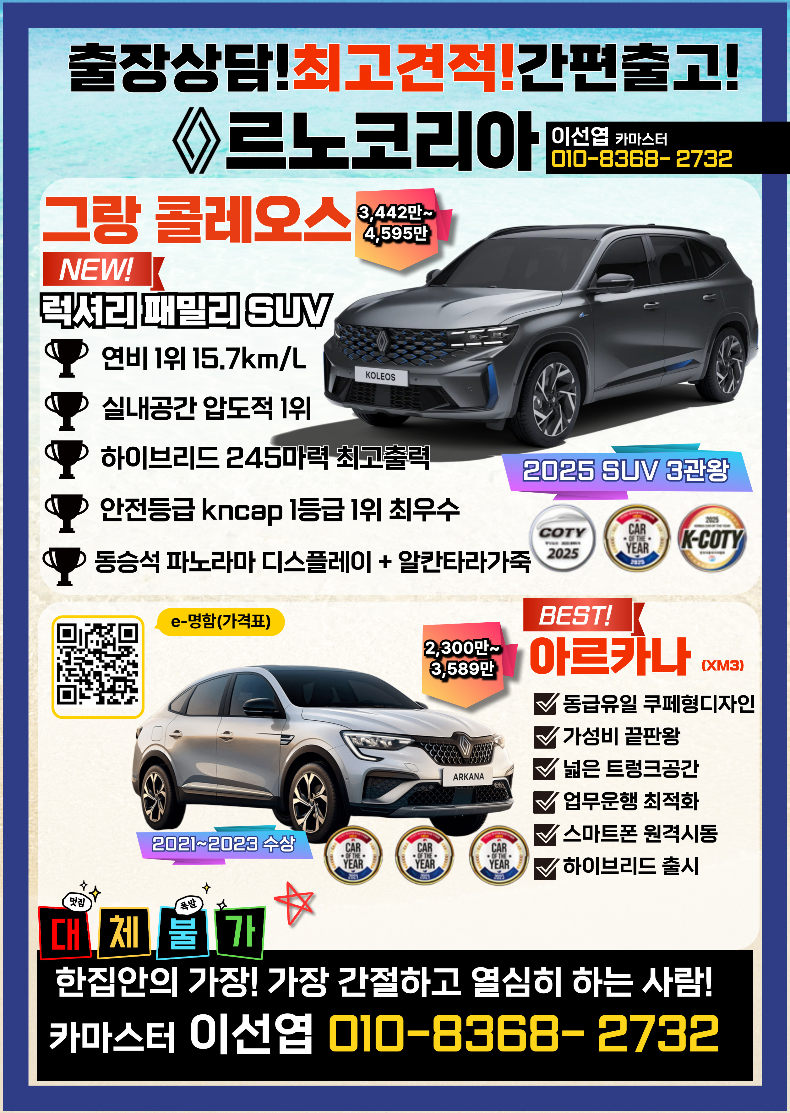 인천 경기 르노 그랑콜레오스 출고 친절한 자동차딜러 소개 (1) | 2025.03.28 |